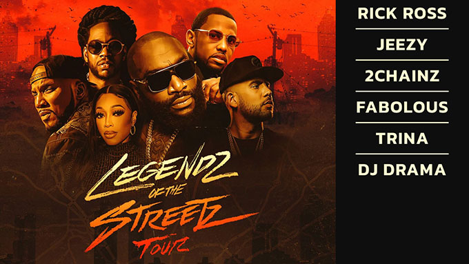 Legendz of The Streetz tour 2025 announced: Legendz of the Streetz, one of the most prestigious hip-hop tours, returns after the phenomenal success of 2021 with nine of the 20 additional shows scheduled from Thursday, February 3, 2022 in Columbus, GA. The second stage of the Legendz of the Streetz Tour will see the participation of the greatest stars of hip-hop, including Rick Ross, Jeezy, Gucci Mane, 2 Chainz, Fabolous, Trina and DJ Drama, after the tour had to be postponed by three months because of the epidemic.